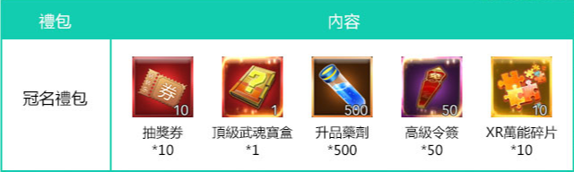 3. 每個伺服器的冠名權有且只有一次,同伺服器後續達標的玩家無法享有該伺服器的冠名權,但是同樣可以獲取冠名禮包一份。玩家對於冠名權的歸屬如有疑問,可以聯緊客服咨詢當前伺服器是否已獲取過冠名權